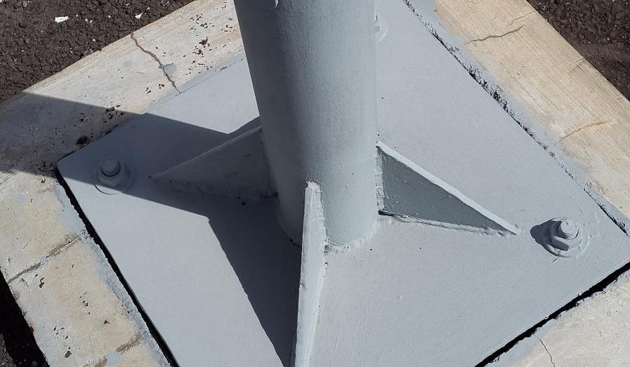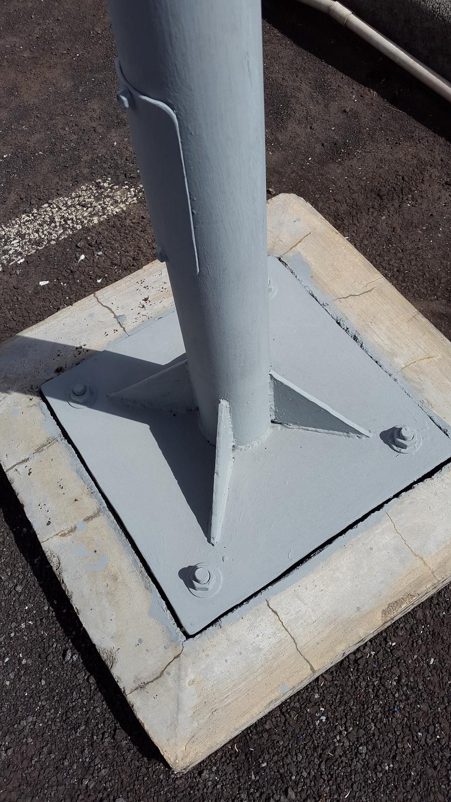 Renovation of partly galvanized light poles at Ebene with ROVAL cold galvanizing compound.